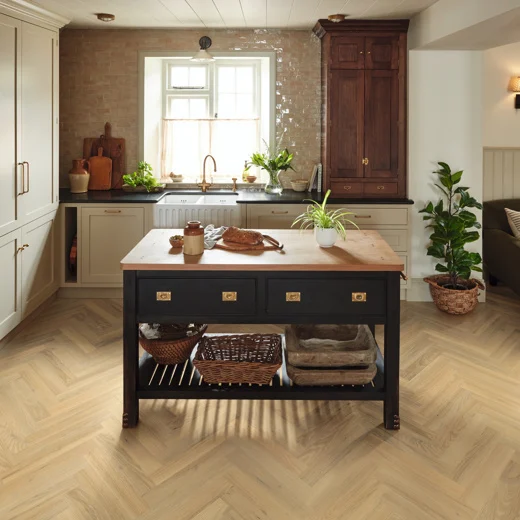 Wells Acacia in a herringbone design blends gentle elegance with inviting warmth. Its medium-brown tones balance light and dark perfectly, creating a cosy, welcoming atmosphere. Inspired by the strength and beauty of the acacia tree, each 18″ x 3″ plank features soft highlights and dark knots for a naturally textured look. The herringbone layout adds timeless structure and refined sophistication to any interior style.